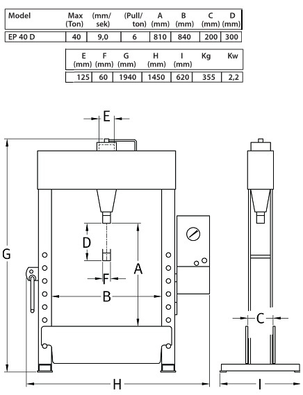Технические характеристики EP 40 D: