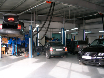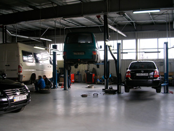 СТО имеет ряд дополнительного ремонтного оборудования: пресс, складной кран для снятия двигателя, трансмиссионные стойки, мойки деталей. Как и положено фирменной дилерской станции - набор специнструмента VAG.