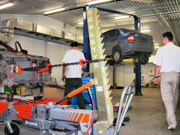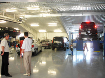 «Реал-Авто»Оригинальный современный автоцентр. Донецк, 2007 Автобизнес в Украине развивается. Причем речь не о добавлении очередных 1-2 тыс. квадратных метров автомобильных сервисных площадей в очередном регионе. Приятно, что автобизнес делают разные люди со своими взглядами, мировоззрением и вкусом. Иногда получается интересно и нестандартно. Автоцентр Реал-Авто в Донецке - именно тот случай. Поголовное увлечение по возведению крупных концептуальных автоцентров не всегда хорошо для отражения собственной индивидуальности - «боксовые» подходы (по крайней мере внешне) себя еще не изжили - это можно использовать для создания атмосферы уюта и личного отношения к клиенту - ведь кроме супермаркетов, есть еще и «бутики» - неизвестно, что в итоге лучше! Автоцентр Реал-Авто построен по современным правилам и имеет полный технологический комплекс: мойка, зона ТО, зона экспресс-сервиса и сервиса шин, полноценный кузовной цех с покраской. Ремзона укомплектована достойно: двухстоечные гидравлические подъемники ROTARY SPOA 3TB и SPO 40M грузоподъемностью 3 и 4 тонны позволяют обслуживать все типы автомобилей, включая джипы и вэны. Ножничный подъемник GLP-35 (3,5 тонны) от ROTARY удобен и популярен. Пост регулировки развала-схождения универсальный - укомплектован компьютерным стендом Геолайнер-480 от HOFMANN и мощным 4-х стоечным подъемником ROTARY AR 55-51 на 5,5 тонн с длинной базой. Подъемник очень популярен для универсальных станций благодаря неограниченному использованию для любого транспорта, включая длиннобазовые версии LT и SPRINTER. Кузовной цех с зоной разборки и рихтовки. Базовый стапель - классический мобильный рамный стенд CELETTE. Покрасочный цех, как и положено по нормам безопасности, выделен в отдельное помещение. Покрасочно-сушильная камера WORLD 7000M (на металлическом основании) и полноценный пост подготовки GENIUS ER 3500 с полным воздухообменом - классическое решение для профессионалов, правильно понимающих технологию. Покрасоный цех хорошо укомплектован дополнительным оборудованием: ИК-сушки IRT, Швеция, автомат для мойки краскопультов DRESTER, масса подставок и спецприспособлений для подготовки и подкраски деталей. Сжатый воздух - от роторного компрессора BSC 2010 500F. Хороший получился проект, мы с удовольствием в нем принимали участие. Успехов Вам, Реал-Авто !