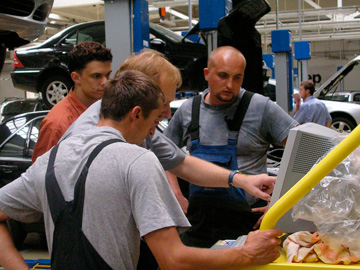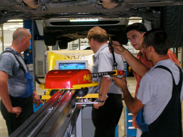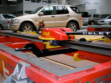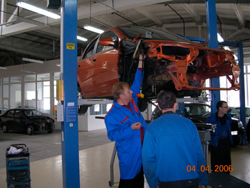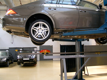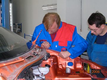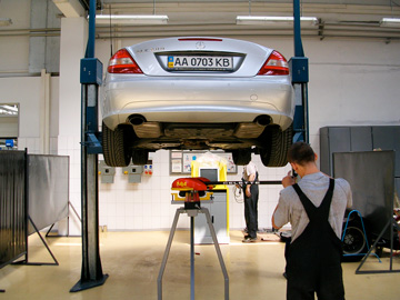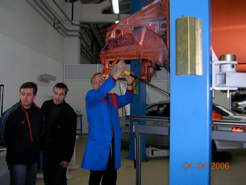 «Автомобильный дом Украина-Мерседес-Бенц»Профессиональная рихтовка «серьезных машин». Киев, 2006 Мерседес - машина серьезная. Об этом Вам скажет любой профессиональный рихтовщик, - нет более сложных и трудных кузовов автомобилей, требующих максимального приложения усилий для вытяжки и восстановления геометрии. Поэтому подобрать приличный рихтовочный стенд для Мерседеса достаточно просто - это CELETTE, - другие просто не справятся Центр Мерседес-Бенц на Столичном - одна из первых станций в Украине, где появились первые рихтовочные стенды CELETTE. Мерседес - автомобиль популярный и дорогой, рихтовка загружена на полную мощность, поэтому с каждым годом растет количество стендов, - на Мерседесе сегодня можно увидеть, пожалуй, весь модельный ряд профессиональных стапелей, которые производил CELETTE за последние 10 лет.