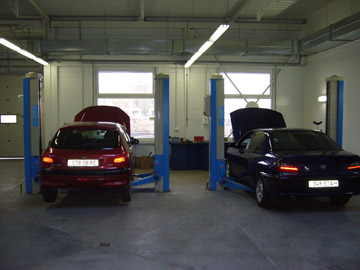 Основная ремонтная зона оснащена традиционными и испытанными временем двухстоечными электромеханическими подъемниками KPX 327H от RAV, показавшим себя вот уже более 10 лет очень достойно в легковом сервисе. Этот «итальянец» хоть и не современен на вид, однако прост и надежен.