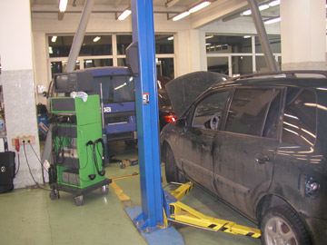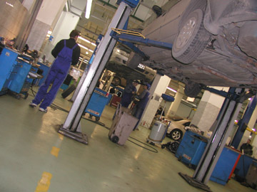 |  | Огромное количество постов на сервисе казалось настолько неуместным и излишним еще 8 лет назад (как они загрузят такой огромный сервис?). Но прошло всего 4 года и станция стала просто забита автомобилями. |  |  | Для Киевских мерок 2007 года - ремзоны фирменного сервиса уже очень и очень мало - очередь, 2-3 смены, работа в выходные. Рынок развивается быстро и рассчитывать нужно, оказывается, с очень хорошим оптимизмом. |  |  | | Укомплектована станция плотно и профессионально. Уже в 90-х отдавали себе отчет и посты оснащали профессиональным инструментом и специнструментом HAZET, - тогда не многие себе могли это позволить. |